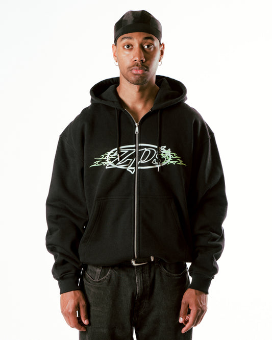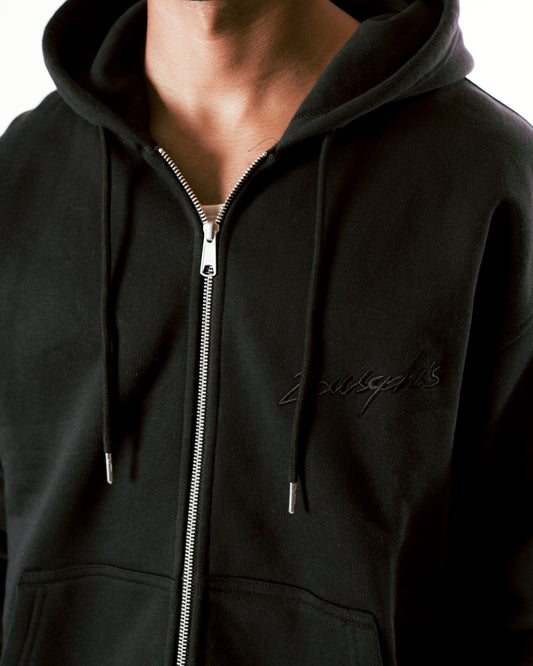 SOLD OUTPRINTED ZIPPER HOODIE - BLACK