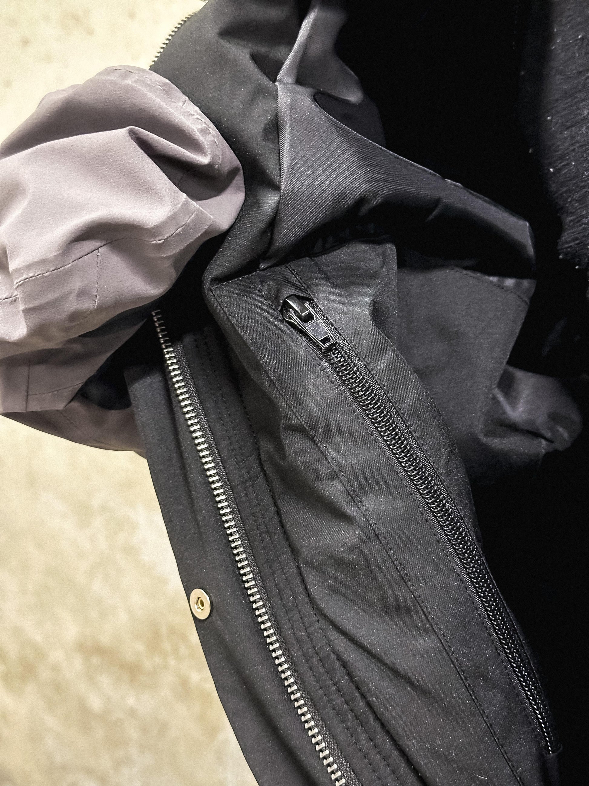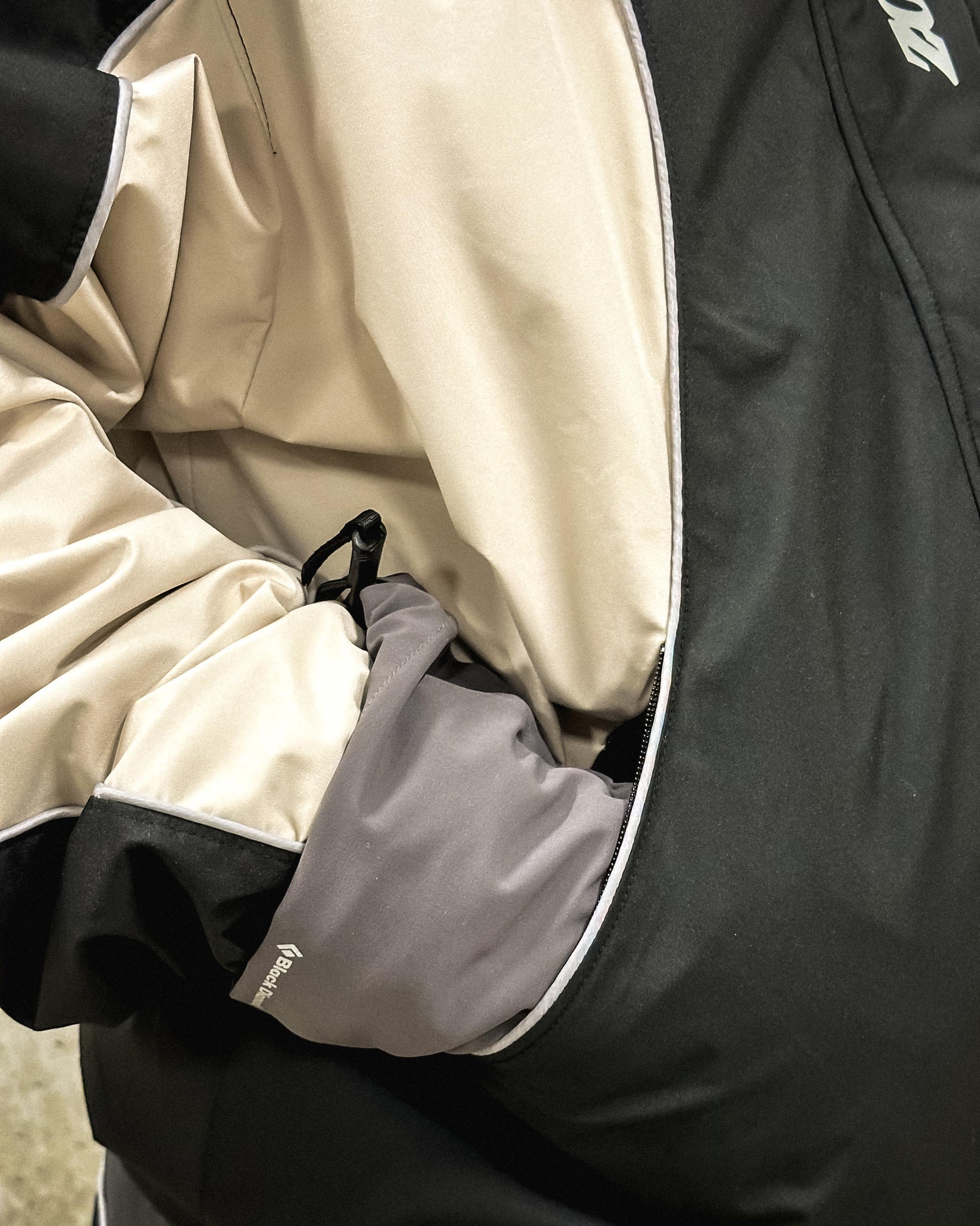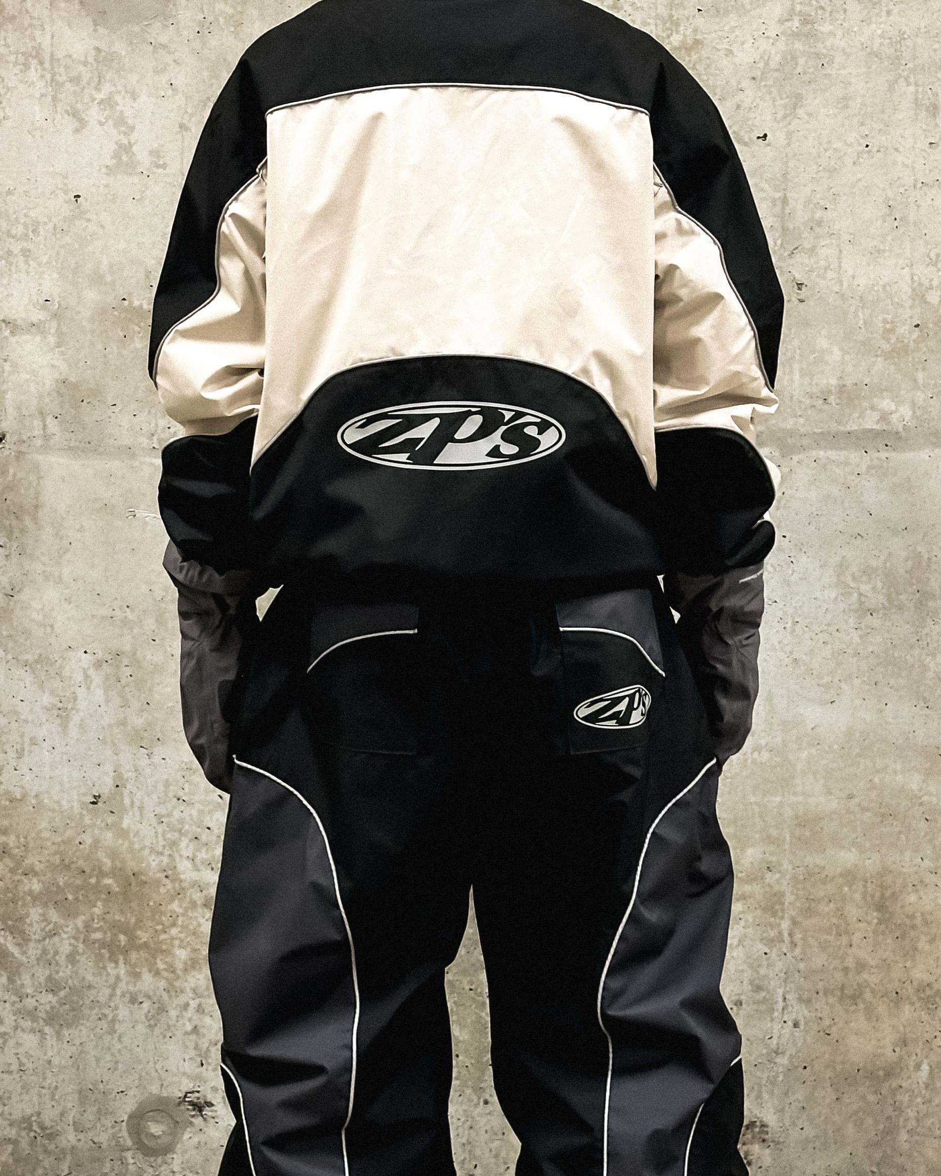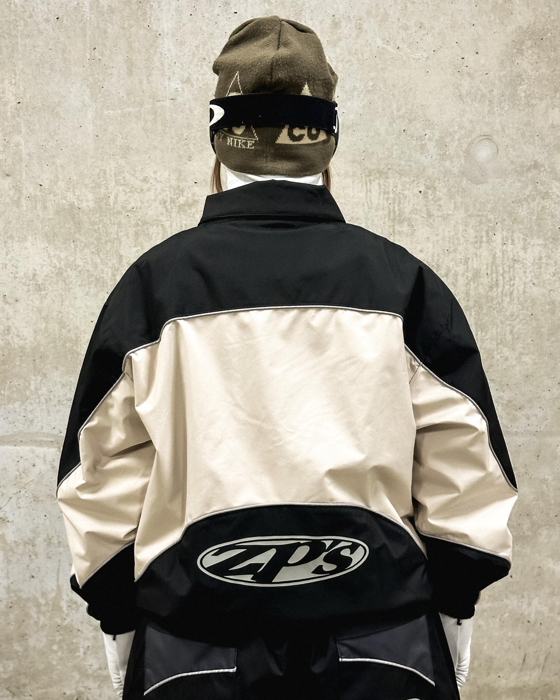 Two-tone hoodless snow jacket with a water-resistant polyester outer shell and 80g insulation. Features a large ZPS logo on the back and a clean Zouseph's text logo on the front.